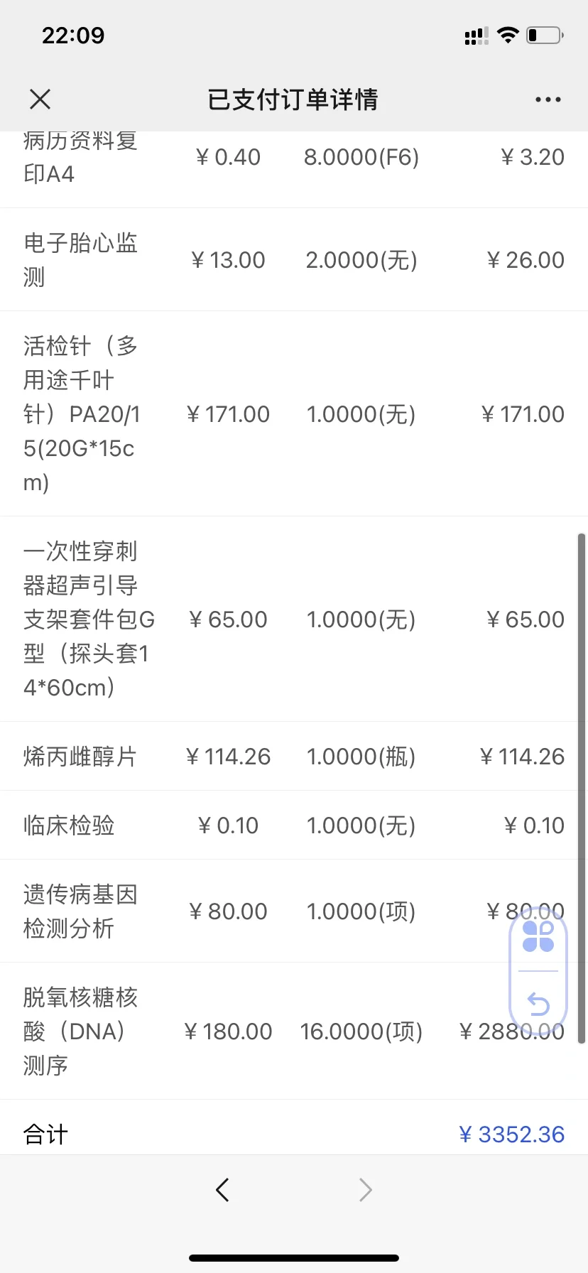 周一八点之前到了_挂号聊项目_在医生普及专业区别下选择了核型(免费)+cnv-plus(2880_DNA测序)_开检查单_风险知情签字_第二天总费用耗材操作费等3352.36