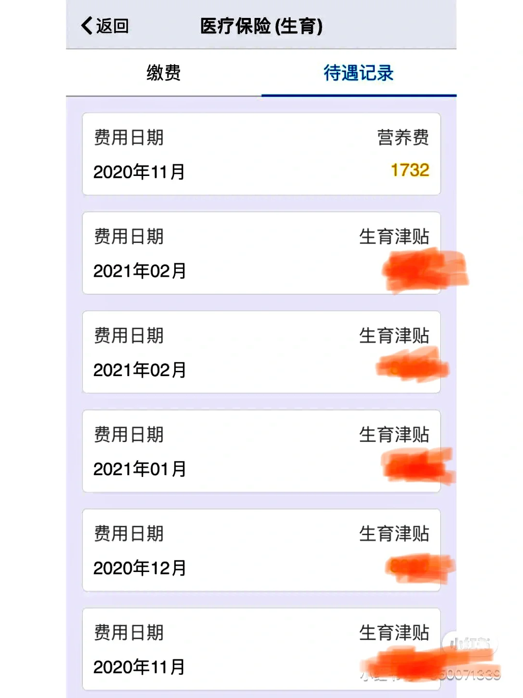 4⃣️生育津贴:仅限缴纳生育险的挂靠单位。总金额根据单位上一年度社保平均缴费基数确定,但不应低于孕妇128天工资。如孕妇本人无生育险,但配偶有,也可从配偶处报销,金额相对较少(约几千元)。若生产时已使用社保卡,无需额外提交材料,社保局会将津贴直接汇入公司账户,由公司再发给个人。可在“我的南京”APP查询待遇记录。我于20.11.13生产,21.3.3在APP上查到待遇记录,营养费1732元(固定金额)已直接发到社保卡;其余津贴发至公司账户。